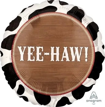 Accent your party decor with this Yeehaw ,45cm 18 Inch Standard Foil Balloon. Incorporate this balloon into a balloon bouquet, on top of balloon columns or other balloon decor. Add color coordinating mylars and latex balloons for the ultimate balloon bouquet! This balloon is printed / coloured on both sides includes a self-sealing valve, preventing the gas from escaping after it's inflated. The balloon can be inflated with helium to float or with a balloon air inflator to hang. Balloon arrives uninflated.