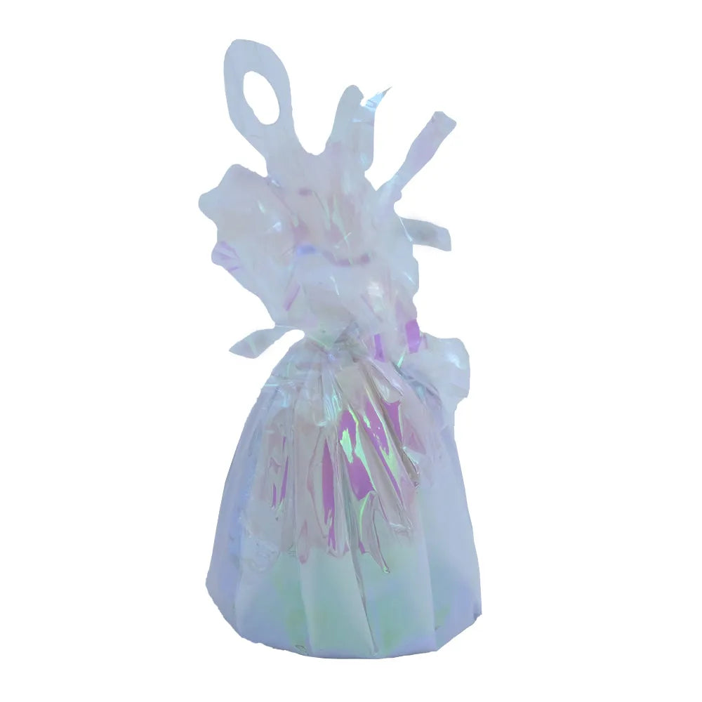 Weigh down your balloons in style with these Iridescent Foil Balloon Weight 170g! Great for balloon bouquets, the balloon weight will hold up to 10 x 12 inch 30cm latex or foil mylar balloons and weighs 170 grams. Features a strip loop to tie your balloon ribbons on to.
