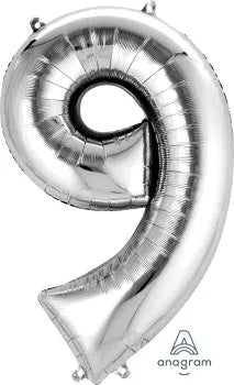 Our Silver 9, Giant Numer Shaped 86cm 34" Foil Balloons are the ultimate way to celebrate someone's birthday, a business grand opening or for marketing a new product at a trade show! Spell out the person's name or product name and either inflate them with helium to have them float or with air to not have them float and attach them to the wall. These huge balloons are great for bouquets, photo backdrops, on the top of balloon columns, design them into the top of balloon arches and more. Add color coordinating mylars and latex balloons for the ultimate balloon bouquet! This balloon includes a self-sealing valve, preventing the gas from escaping after it's inflated. Balloon arrives uninflated.