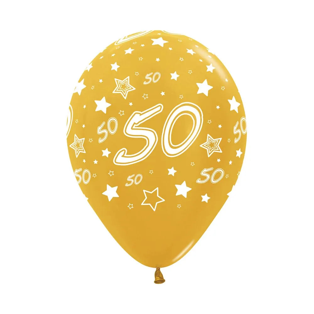 These Printed Number Latex Balloons, Sempertex 12 Inch 30cm Balloons 50 Pack Metallic Gold All Over Print Latex Balloons, Sempertex 12 Inch 30cm Balloons 50 Pack are perfect for making balloon arches, balloon columns, balloon clusters, and other balloon decorations. Color coordinate these latex balloons with themed foil mylar balloons for the ultimate balloon bouquet! The balloons can be inflated with helium to float. Balloons arrives uninflated.