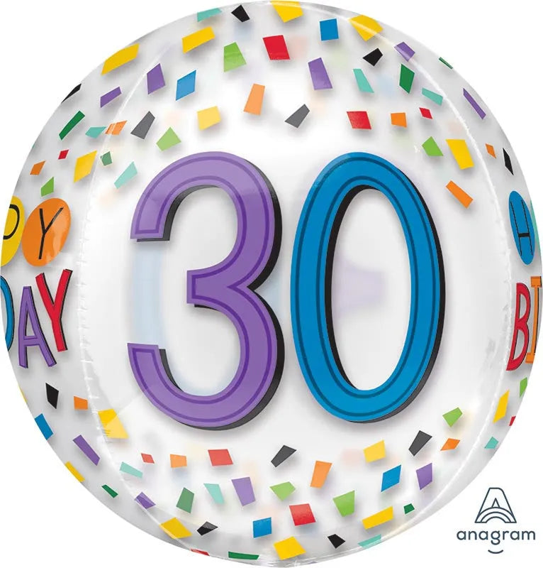 Celebrate that special someone's birthday or event with this fun 30th Birthday Rainbow Confetti Big 16 Inch 40cm Spherical Shaped 3D Orbz Balloon 1 Pack! Combine a couple of these orbz balloon, which look like beach balls, designs with a few of our birthday latex balloons to create a bouquet cluster to give someone as a special gift or to use as birthday party decor. This balloon includes a self-sealing valve, preventing the gas from escaping after it's inflated. The balloon can be inflated with helium to float or with a balloon air inflator. Balloon arrives uninflated.