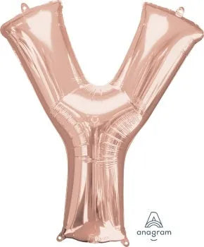 Our Letter Rose Gold Y, Giant Letter Shaped 86cm 34" Foil Balloons are the ultimate way to celebrate someone's birthday, a business grand opening or for marketing a new product at a trade show! Spell out the person's name or product name and either inflate them with helium to have them float or with air to not have them float and attach them to the wall. These huge balloons are great for bouquets, photo backdrops, on the top of balloon columns, design them into the top of balloon arches and more. Add color coordinating mylars and latex balloons for the ultimate balloon bouquet! This balloon includes a self-sealing valve, preventing the gas from escaping after it's inflated. Balloon arrives uninflated.