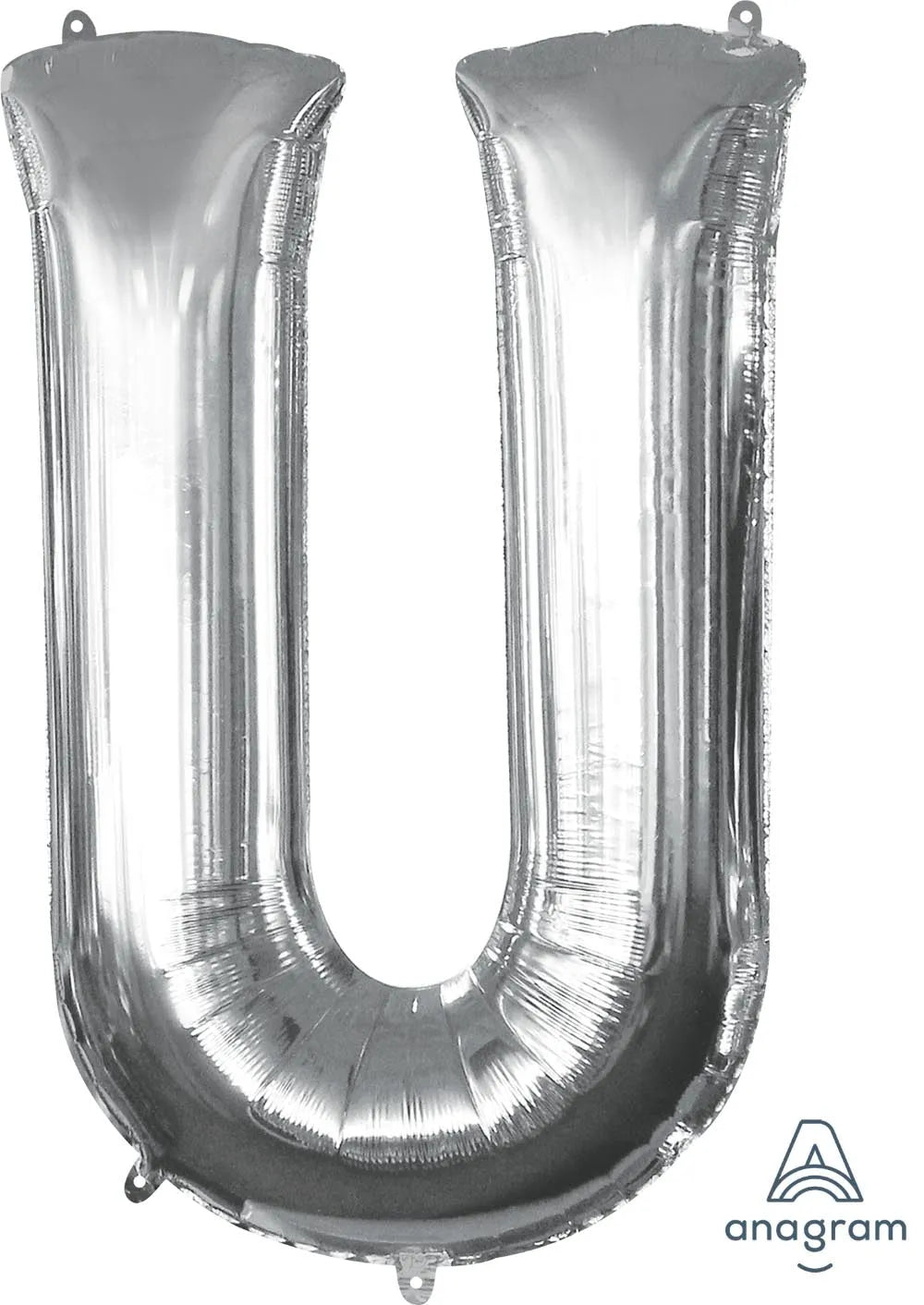 Letter Silver U, Giant Letter Shaped 86cm 34" Foil Balloon