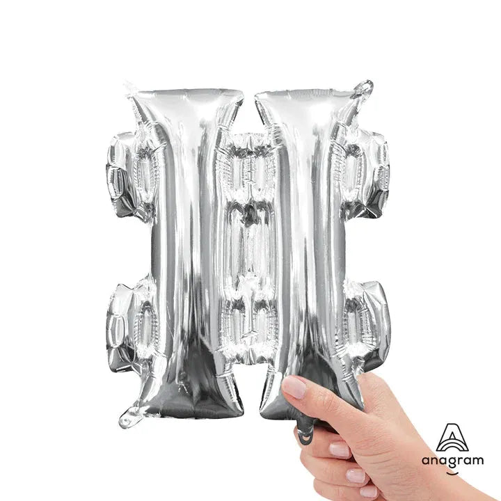 Our Symbol # Silver, Mini 40cm 16 Inch Air-Fill Only Foil Balloons are the ultimate way to celebrate someone's birthday, a business or for marketing a new product! Spell out the person’s name or product name and attach them to a string to make a celebratory banner or tape them to the wall or backdrop. Tape and hanging devices not included. Inflate balloons with air-only. Balloon does not float and arrives uninflated.