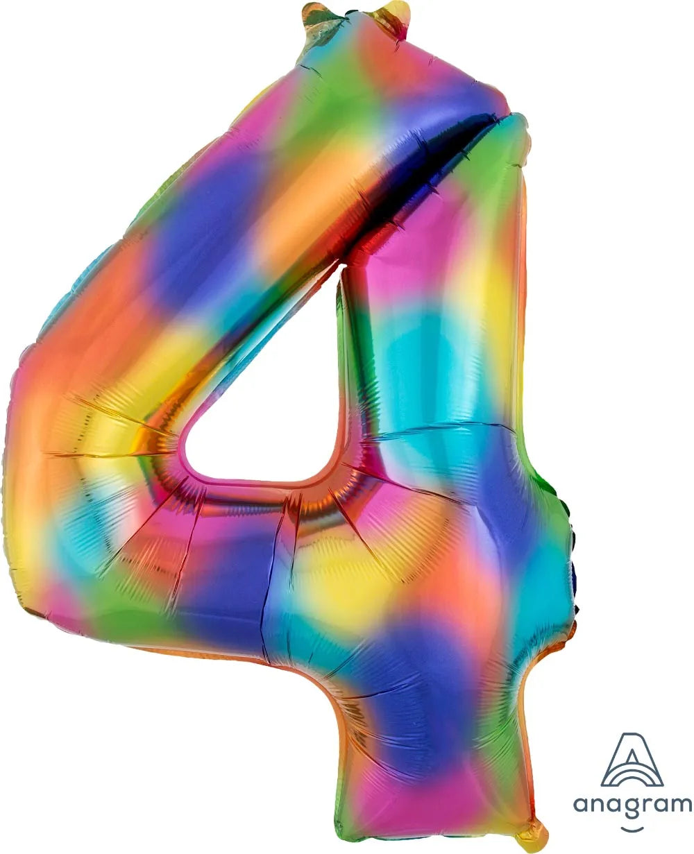 Rainbow Splash 4, Giant Number Shaped 86cm 34" Foil Balloon