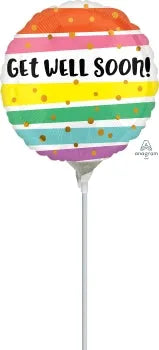 Get Well Bold Stripes 9 Inch 23cm Mini Air Fill Foil Balloon with Stick