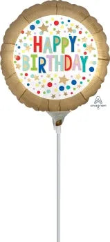 Gold Satin Marquee Dots Birthday 9 Inch 23cm Mini Air Fill Foil Balloon with Stick