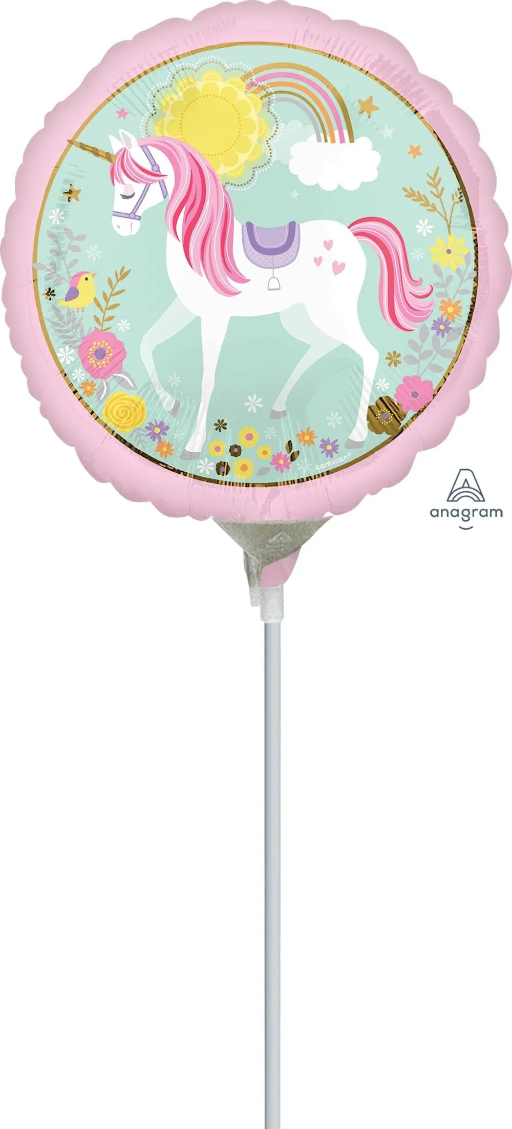 This Magical Unicorn 9 Inch 23cm Mini Air Fill Balloon with Stick (Air Fill Only) is great for any themed centerpiece or gift basket or can be used as an add-on accessory piece to balloon decor. Balloon must be inflated with air only using a hand pump and sealed using a heat sealer. Balloon does not float and ships un-inflated. Cup and Stick included. Balloon can be used with or without Cup and Sticks.
