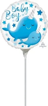 This Narwhal Baby Boy 9 Inch 23cm Mini Air Fill Balloon with Stick (Air Fill Only) is great for any themed centerpiece or gift basket or can be used as an add-on accessory piece to balloon decor. Balloon must be inflated with air only using a hand pump and sealed using a heat sealer. Balloon does not float and ships un-inflated. Cup and Stick included. Balloon can be used with or without Cup and Sticks.