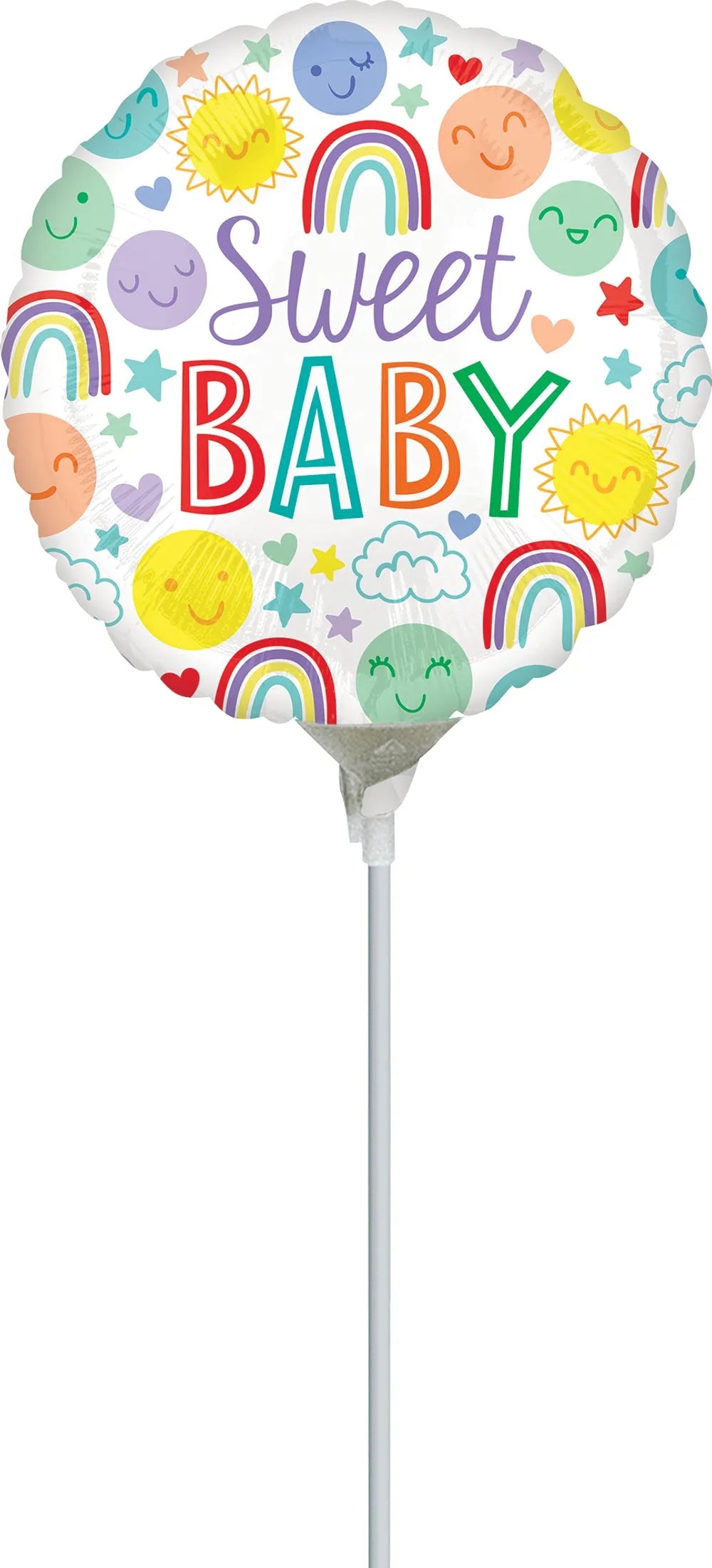 Sweet Baby Icons 9 Inch 23cm Mini Air Fill Foil Balloon with Stick
