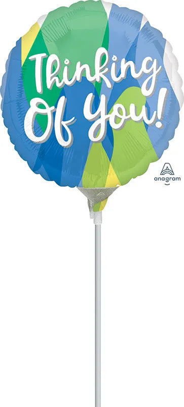 Thinking Of You Colorful 9 Inch 23cm Mini Air Fill Foil Balloon with Stick