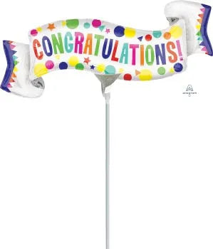 Congrats Banner 35cm 14 Inch Mini Air Fill Foil Balloon with Stick