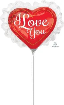 This Love You Ruffle 35cm 14 Inch Mini Air Fill Foil Balloon with Stick (Air Fill Only) is great for any themed centerpiece or gift basket or can be used as an add-on accessory piece to balloon decor. Balloon must be inflated with air only using a hand pump and sealed using a heat sealer. Balloon does not float and ships un-inflated. Cup and Stick included. Balloon can be used with or without Cup and Sticks.