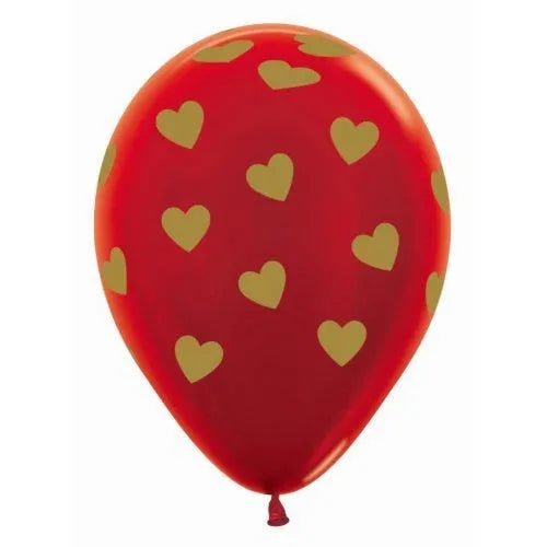 These Printed Assortedic Heart Gold on Metallic Red All Over Print Latex Balloons, Sempertex 12 Inch 30cm Balloons 50 Pack are perfect for making balloon arches, balloon columns, balloon clusters, and other balloon decorations. Color coordinate these latex balloons with themed foil mylar balloons for the ultimate balloon bouquet! The balloons can be inflated with helium to float. Balloons arrives uninflated.