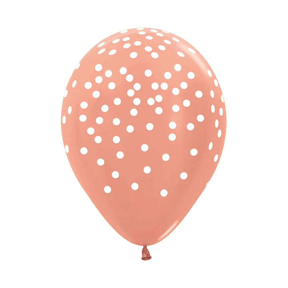 Printed Confetti White Metallic Rose Gold All Over Print Latex Balloons, Sempertex 12 Inch 30cm Balloons 50 Pack