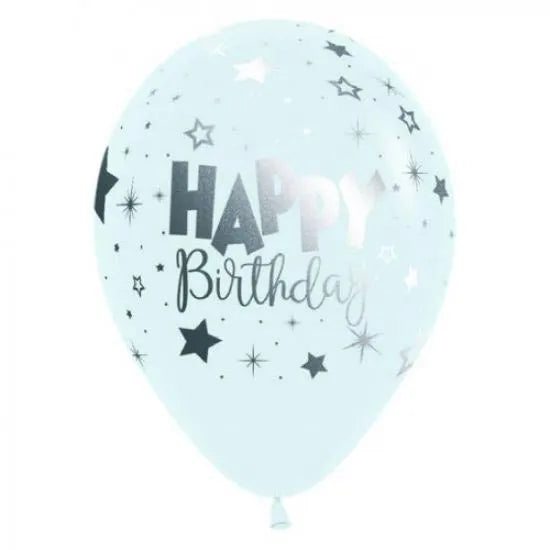 These Printed Happy Birthdayay Fantasy White All Over Print Metallical Ink Latex Balloons, Sempertex 12 Inch 30cm Balloons 50 Pack are perfect for making balloon arches, balloon columns, balloon clusters, and other balloon decorations. Color coordinate these latex balloons with themed foil mylar balloons for the ultimate balloon bouquet! The balloons can be inflated with helium to float. Balloons arrives uninflated.