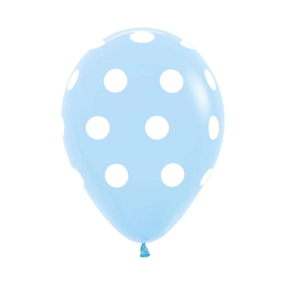 These Printed Polka White on Fashion Blue All Over Print Latex Balloons, Sempertex 12 Inch 30cm Balloons 50 Pack are perfect for making balloon arches, balloon columns, balloon clusters, and other balloon decorations. Color coordinate these latex balloons with themed foil mylar balloons for the ultimate balloon bouquet! The balloons can be inflated with helium to float. Balloons arrives uninflated.