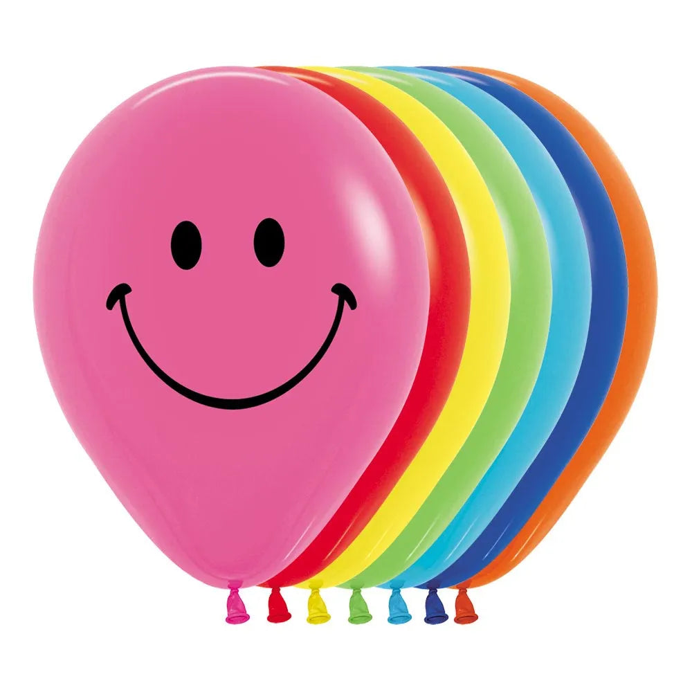 These Printed Smiley Face Assorted Fashion 2S 1C Latex Balloons, Sempertex 12 Inch 30cm Balloons 50 Pack are perfect for making balloon arches, balloon columns, balloon clusters, and other balloon decorations. Color coordinate these latex balloons with themed foil mylar balloons for the ultimate balloon bouquet! The balloons can be inflated with helium to float. Balloons arrives uninflated.