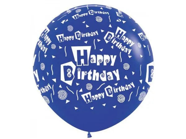 Printed Bday White on Royal Blue Fashion All Over Print Latex Balloons, Sempertex 36 Inch 90cm Balloons 1 Pack