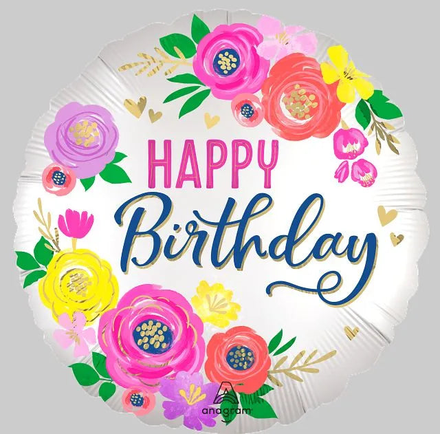 Accent your party decor with this Artful Floral Birthday ,45cm 18 Inch Standard Foil Balloon. Incorporate this balloon into a balloon bouquet, on top of balloon columns or other balloon decor. Add color coordinating mylars and latex balloons for the ultimate balloon bouquet! This balloon is printed / coloured on both sides includes a self-sealing valve, preventing the gas from escaping after it's inflated. The balloon can be inflated with helium to float or with a balloon air inflator to hang. Balloon arrives uninflated.