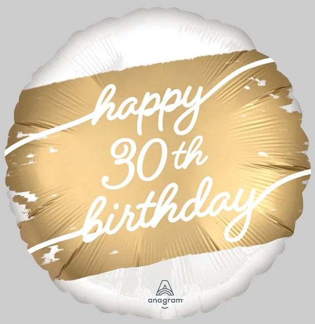 Accent your party decor with this Golden Age 30 ,45cm 18 Inch Standard Foil Balloon. Incorporate this balloon into a balloon bouquet, on top of balloon columns or other balloon decor. Add color coordinating mylars and latex balloons for the ultimate balloon bouquet! This balloon is printed / coloured on both sides includes a self-sealing valve, preventing the gas from escaping after it's inflated. The balloon can be inflated with helium to float or with a balloon air inflator to hang. Balloon arrives uninflated.