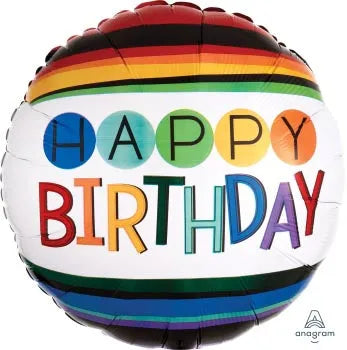 Accent your party decor with this Rainbow Birthday ,45cm 18 Inch Standard Foil Balloon. Incorporate this balloon into a balloon bouquet, on top of balloon columns or other balloon decor. Add color coordinating mylars and latex balloons for the ultimate balloon bouquet! This balloon is printed / coloured on both sides includes a self-sealing valve, preventing the gas from escaping after it's inflated. The balloon can be inflated with helium to float or with a balloon air inflator to hang. Balloon arrives uninflated.