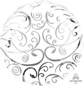 Silver Swirls ,45cm 18 Inch Standard Foil Balloon